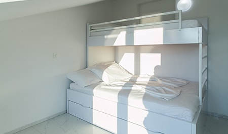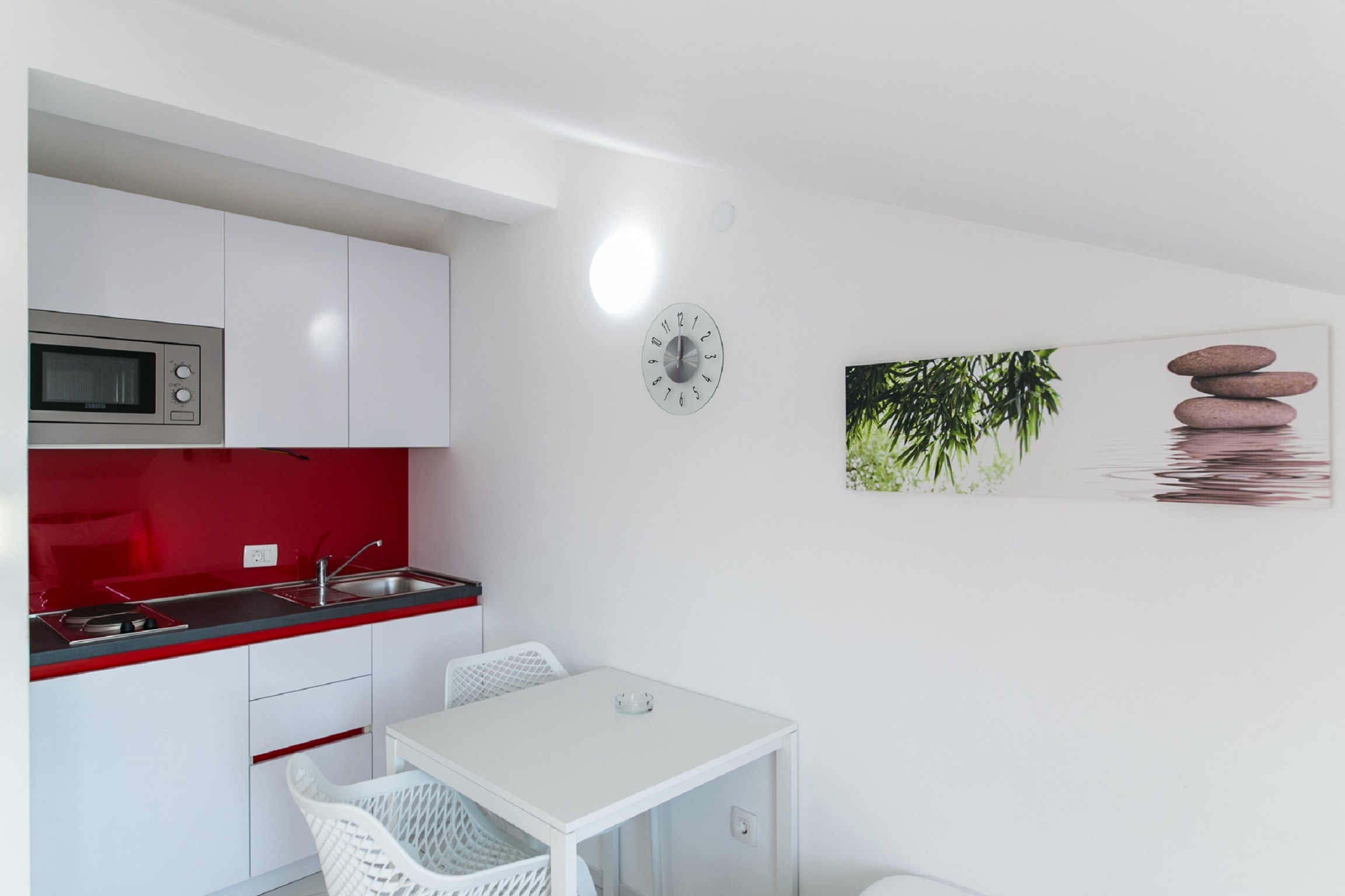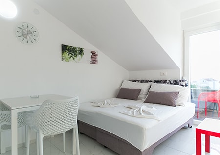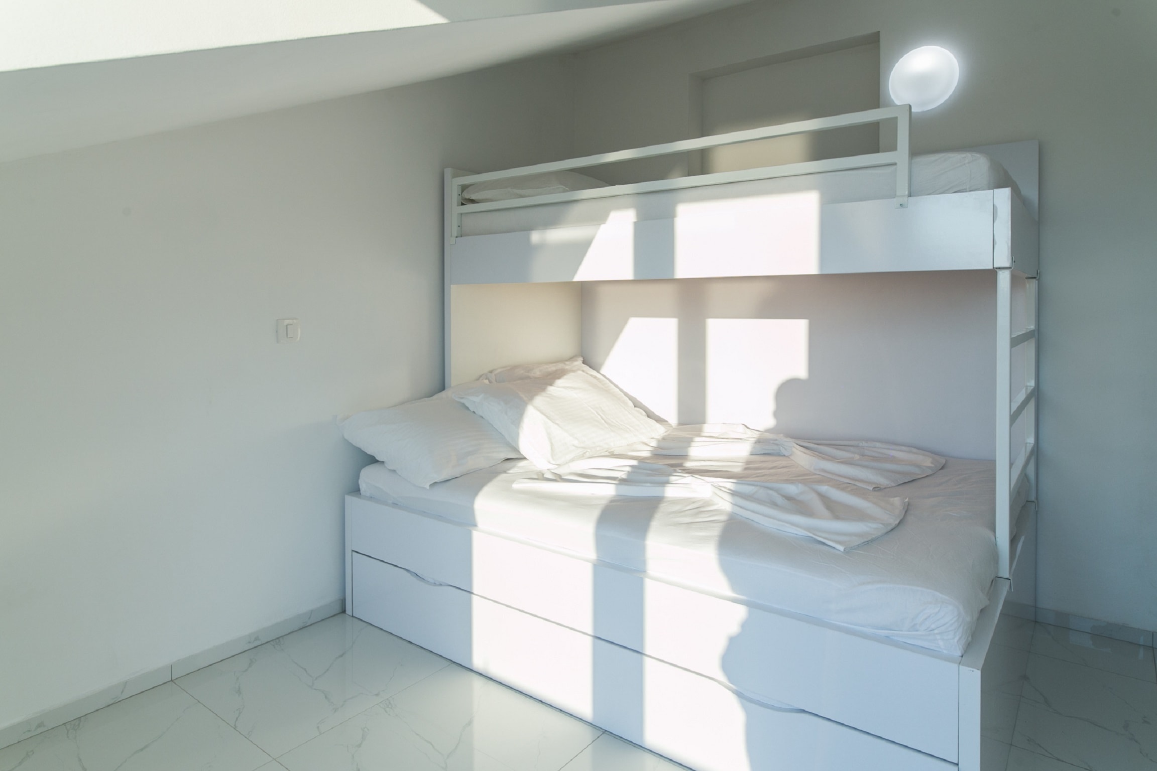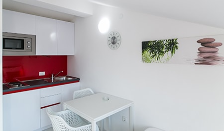Apartment of 40m2 + balcony. It also includes a living room(TV) with an expandable couch which can serve as a bed for 2 persons, a kitchen which is connected to the living room and is completely furnished(microwave oven), 1 bedroom with a bunk bed for 3 persons, a bathroom (shower, toilet) and balcony. The apartment also has free parking, a safe and a wifi.