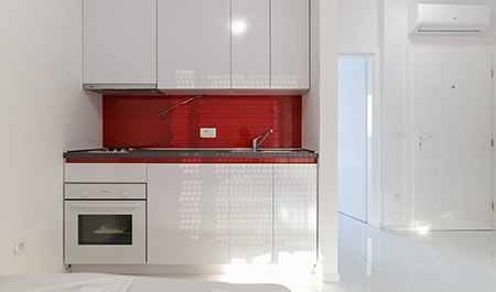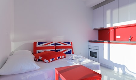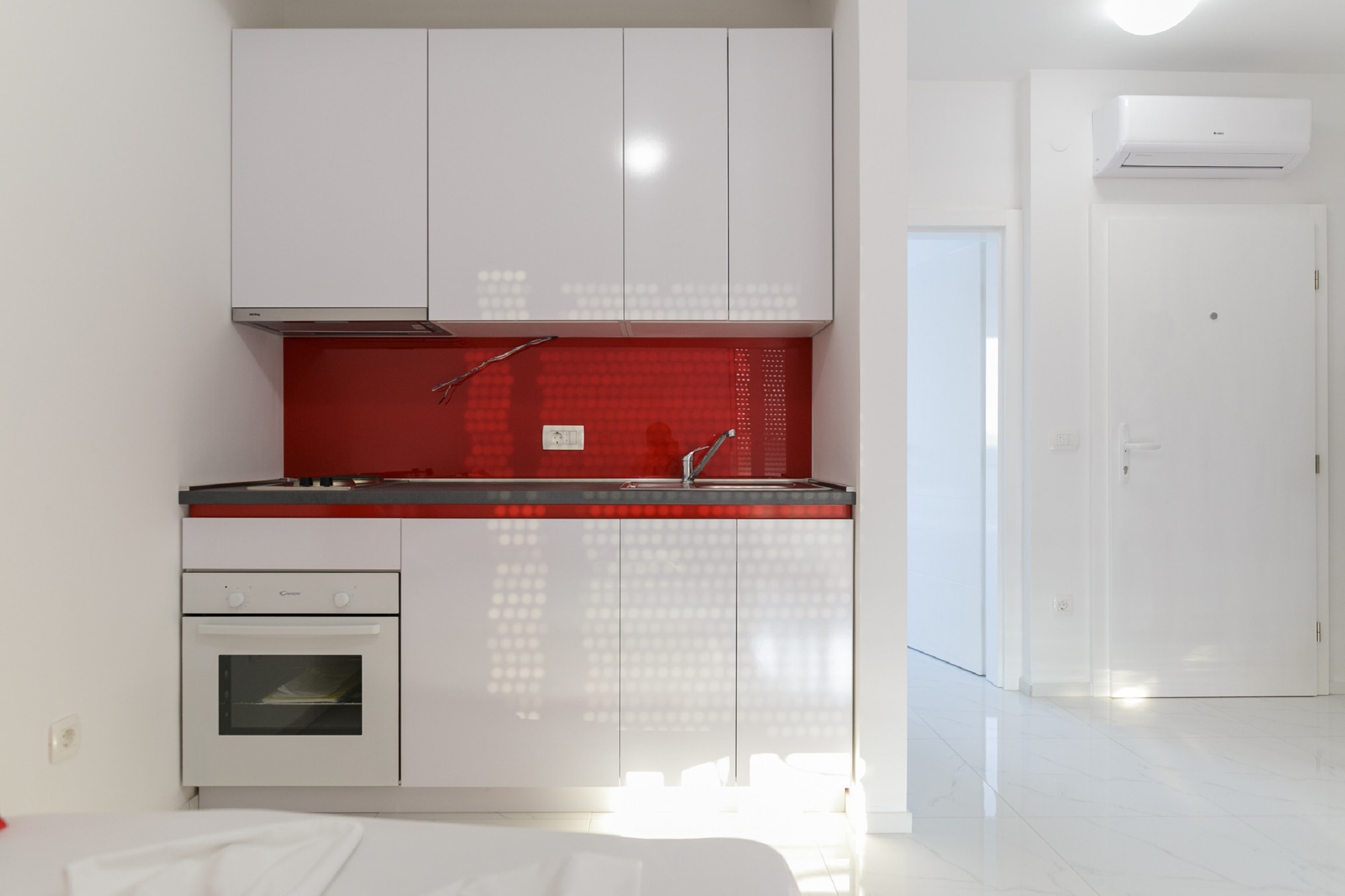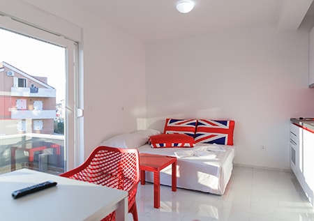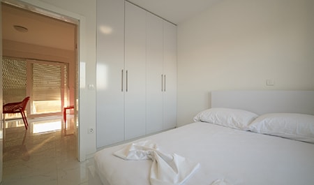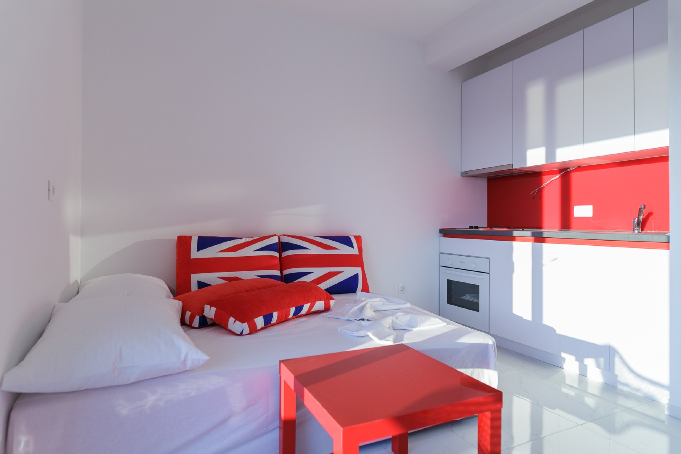 Apartment of 45m2 + balcony. It also includes a living room(TV) with an expandable couch which can serve as a bed for 2 persons, a kitchen which is connected to the living room and is completely furnished(oven), 1 bedroom with a french bed for 2 persons + extra bed for 1 person, bathroom (shower, toilet) and balcony. The apartment also has free parking, a safe and a wifi.