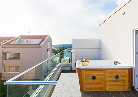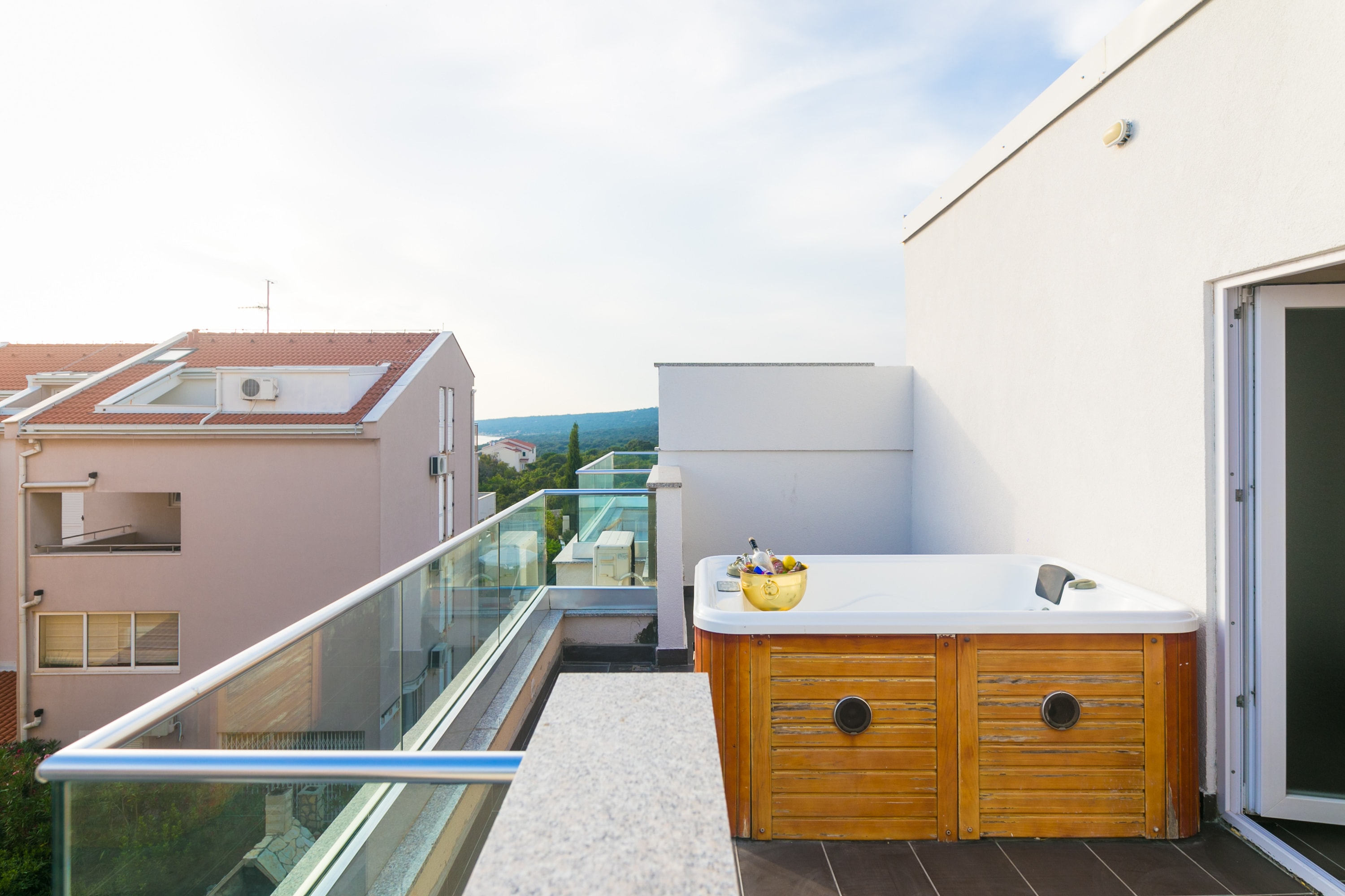 2nd floor: 2 bedrooms for 4 persons, and a small terrace with a beautiful view of the sea and jacuzzi. Apartman also has free parking, safe and wifi.