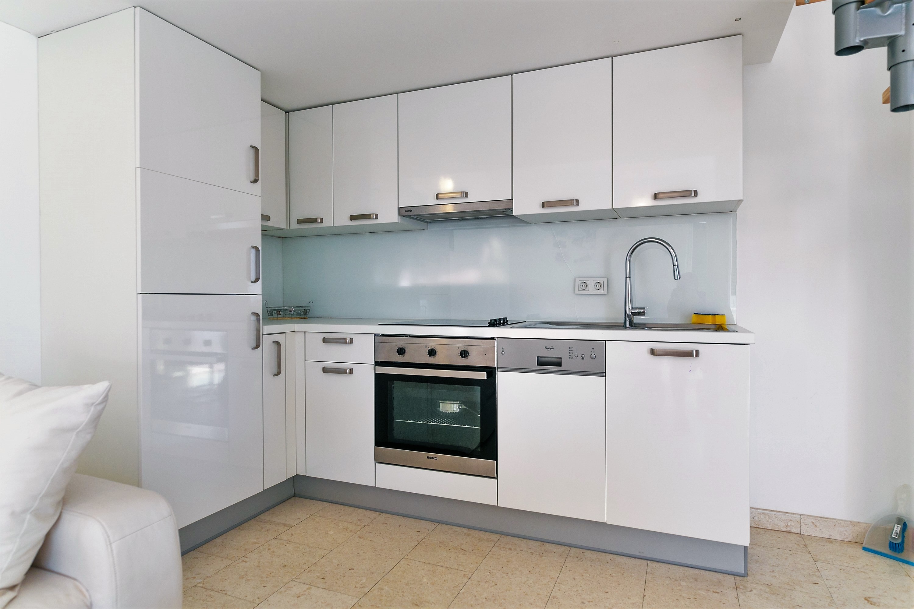 Kitchen is completelly furnished, features a set of dishes for cooking, a set of eating dishes, big and small glasses, a dinner set, coffe maker, a fridge with a built-in freezer, stove with an electric oven, dining table for six and a dish washer. Bathroom is a 4 piece set: a toilet, vanity and a shower.